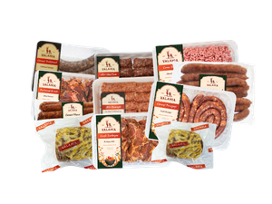 O gamă variată de produse, de la carne frăgezită pentru grătar, la cârnați, mici și specialități afumate