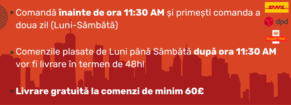 *Important: Termenele de livrare menționate se aplică în zilele lucrătoare obișnuite. În perioadele de sărbători legale din Regatul Unit (Bank Holidays), pot apărea întârzieri în procesarea și livrarea comenzilor.